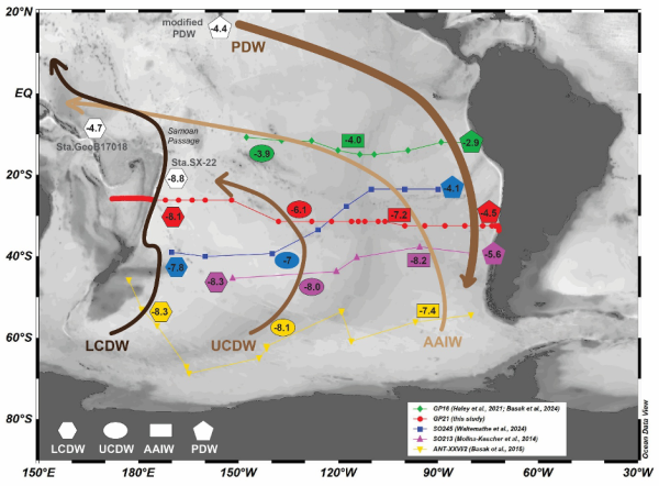- Lawrence, R. M., Shrikumar, A., Le Roy, E., Swift, J., Lam, P. J., Cutter, G. A., & Casciotti, K. L. (2026). Analysis of nutrient and hydrographic patterns on the GEOTRACES Pacific Meridional Section (GP15) using PYOMPA, a new framework for water mass analysis. Marine Chemistry, 274, 104598. doi:10.1016/j.marchem.2025.104598